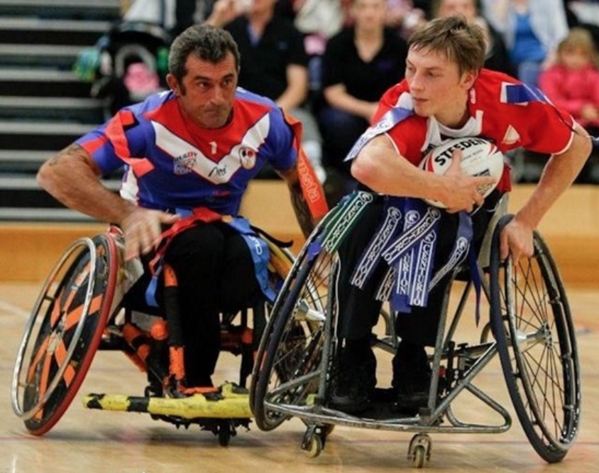 Le rugby-fauteuil est un sport paralympique depuis les Jeux de Sydney en 2000. C’est un sport qui se pratique en intérieur, c’est un mélange de rugby, hockey sur glace et basketball. C’est pour cela que les fauteuils de rugby et de basket se ressemblent.
